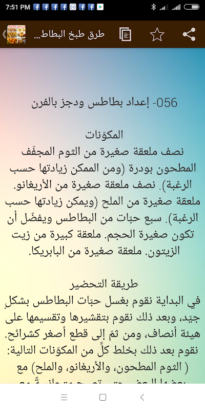 - يمكن اضافة طرق جديدة لطبخ البطاطس إلي المفضلة للرجوع إليها مرة آخري بسهولة