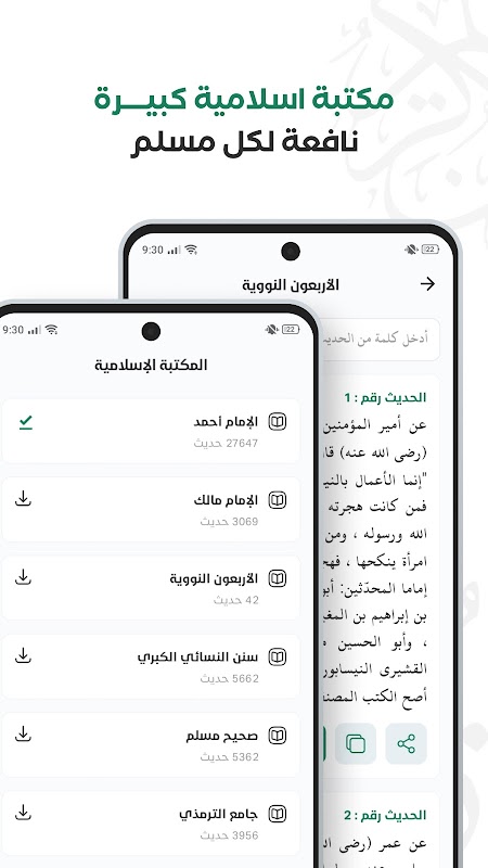 - A comprehensive Islamic library of Hadiths of the Imams (such as Imam Ahmad and Bukhari) with detailed explanations.