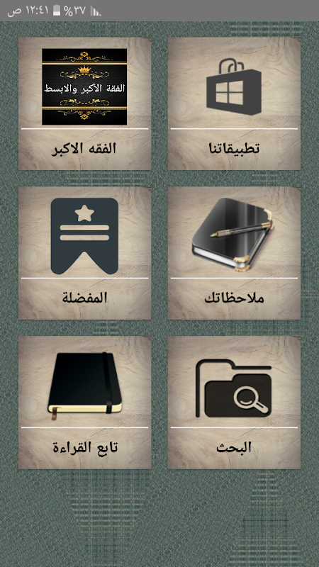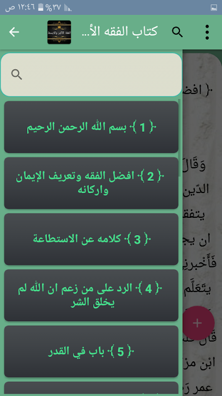 The application includes three books on jurisprudence by Abu Hanifa with explanation