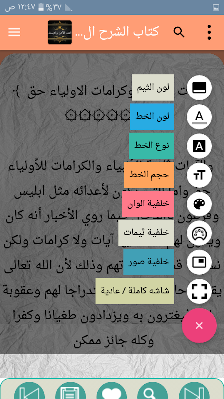 ◉ The possibility of changing the background color of reading the page to hundreds of colors.
