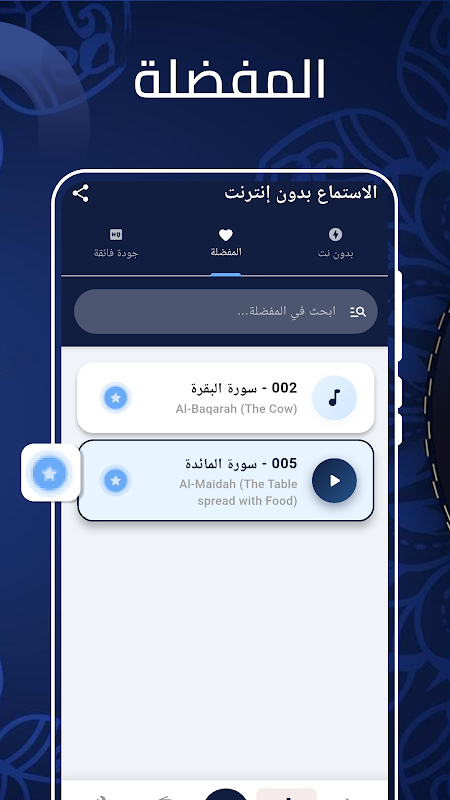 The "Reader Idris Abkar without Internet" application is an excellent choice for users looking for a unique experience to listen to the Holy Quran in the voice of Sheikh Idris Abkar at any time and without the need for an Internet connection. The application provides easy and quick access to different surahs such as Surat Al-Baqarah, Al-Kahf, and Al-Mulk, giving users the opportunity to listen to the recitation of these surahs with ease and comfort. In addition, the "Listen to the Holy Quran in the voice of the reader Idris Abkar" application also allows direct listening to the Holy Quran radio in the voice of the reader Idris Abkar and enjoy the beauty of reading and recitation. For those looking for legal ruqyah, the application also provides the ability to listen to the ruqyah with the same comfort and ease. In addition, the application provides convenient control of the volume and the ability to turn on the pause mode after a specific period of time, "without the Internet, the reader Idris Abkar application", which makes the experience Listening to the Holy Quran with the voice of the reciter Idris Abkar is more comfortable and organized. The application "Idris Abkar without Internet" is the ideal solution for those who want to listen to the Holy Quran with the voice of the reciter Idris Abkar at any time and without the hassle of searching for an Internet connection.