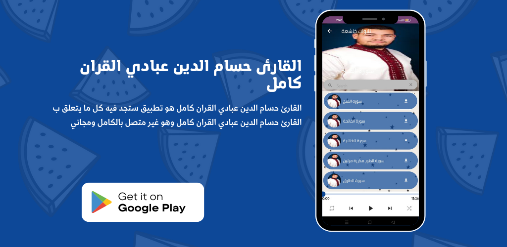 Do not hesitate and download the application now and enjoy a different faith experience with the application of Husam al-Din Abadi without the entire Qur’an net. And if you are a fan of listening to the entire Qur’an with the voice of Hossam El Din Abadi, do not hesitate to take a look at the rest of our applications on the store that are available to users for free and easy.