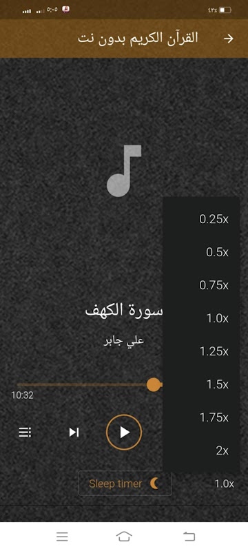 The application offers many features that make it easy to use. These features include speeding up the recitation to your specified speed, sharing Quranic surahs on social media, and a timer feature where the audio stops after the specified period. The application is considered one of the easiest to use applications, and it also has an automatic transition feature after the end of the surah. The Holy Quran recited by Sheikh Ali Abdullah Jaber, offline.