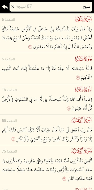 The entire Holy Quran without an Internet connection, and it is completely identical to the paper Quran, in addition to the search feature, easy interpretation, meanings of the words of the Holy Quran, supplications from the Holy Quran, the supplication of completion, the ability to place a bookmark, an index of the Surahs, an index of the parts and sections, and the ability to move to any page. The program keeps the screen lit for those who want to continue reading for a long time, with the ability to control the degree of brightness of the screen, with the ability to read in night mode. If the program is closed at a certain page and opened again, it will automatically go to the page at which it was closed, in addition to the ability to read in both horizontal and vertical modes, with clear font and a background color of the pages that is comfortable for the eye.