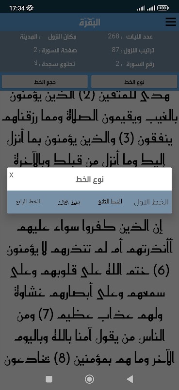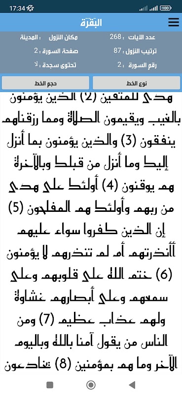 The Noble Qur’an is the word of God in a clear font that can be enlarged and reduced according to the need, in addition to details for each surah, as it shows you the following with each surah: