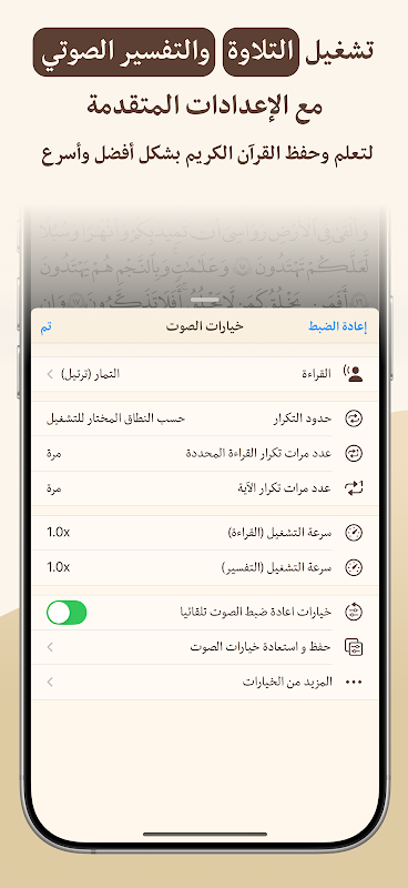 • مشاركة الملف الصوتي للتلاوة عبر مواقع التواصل الاجتماعي