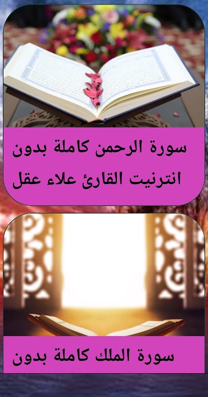 The application that is in your hands includes the Qur’an without the net, with the voice of Alaa Aql, on the entire Holy Qur’an, with the voice of the reciter Alaa Aqel without the Internet