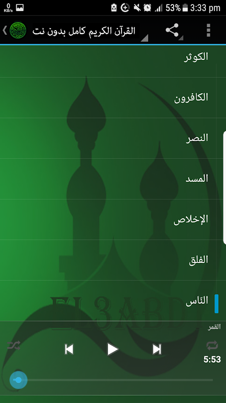 Quran voice Zein Mohammed Ahmed Kamel Al-114 without high quality Net
