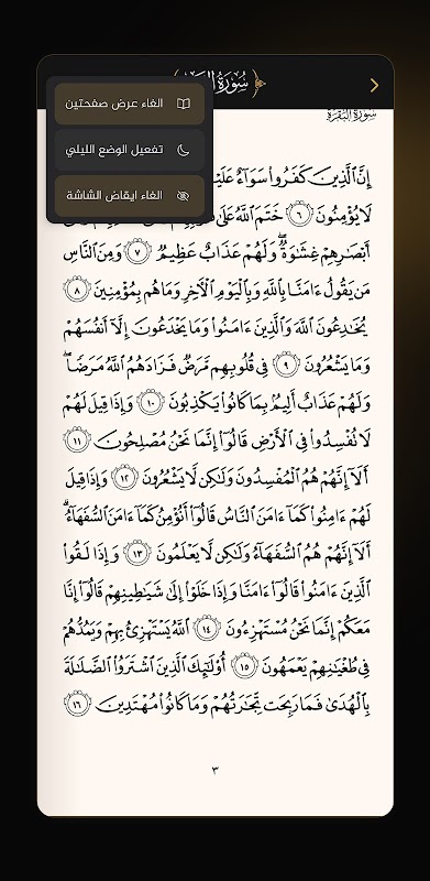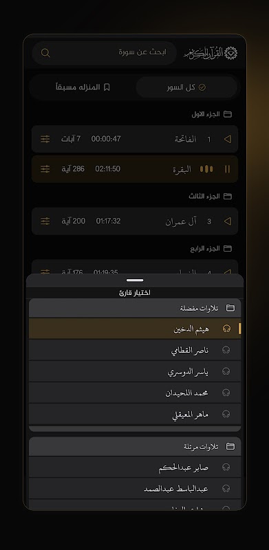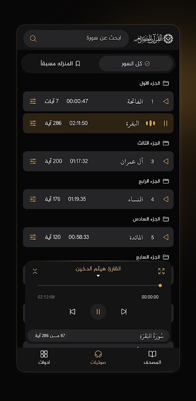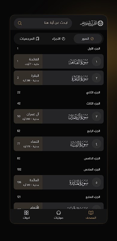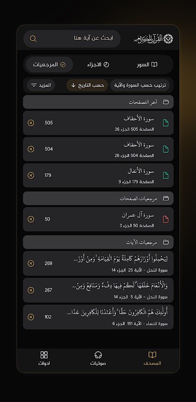 Through the application, you can read the Qur’an and save bookmarks for later reference, wherever you placed them, whether for the surah or the verse, with the possibility of copying the verses and sharing them.