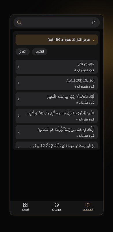 In this version there is also a linking of more than 90% of Imam Nasser Muhammad Al-Yemeni’s statements to the verses, so that when you long press on the verse and then press the verse statement button, you will see the data in which this verse was mentioned along with its information, and you can read the statement or quote from the statement by clicking on Any of the data addresses that appeared to you.