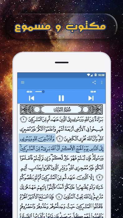 الشريف الالكتروني صوت وصورة بدون انترنت, ملون قراءة مغربية و برواية حفص كما يمكنكم من استماع القرآن الكريم كاملا صوت بدون نت.
