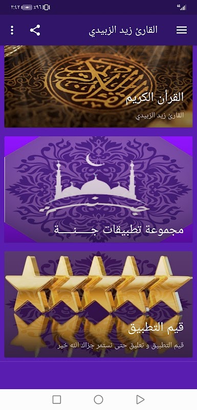تطبيق القران زيد الزبيدي بدون نت و بجودة عالية هوا تطبيق يحتوي على القران الكريم بصوت زيد الزبيدي و جودة الصوت عالية و بدون الانترنت وهوا من مجموعة تطبيقات جـــــنـــــة