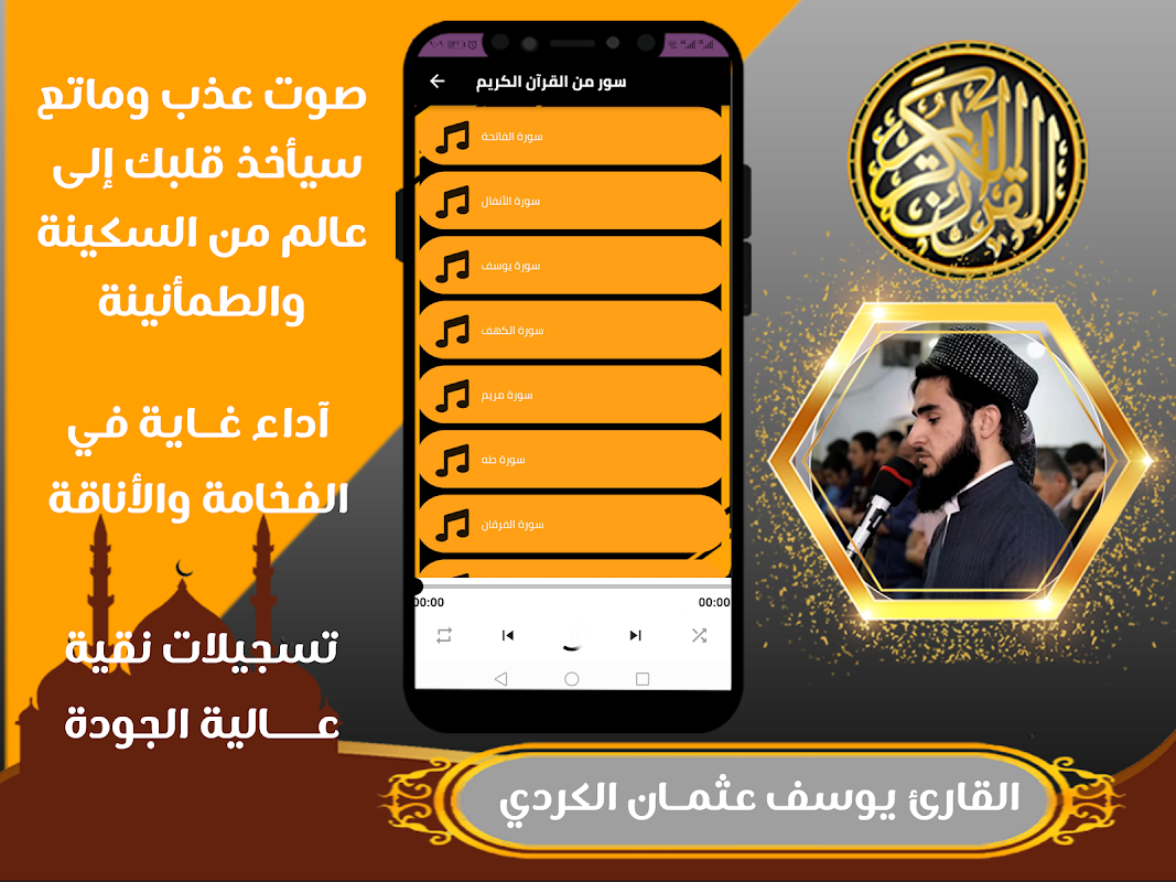 ⬅️ ✅ The Holy Qur’an recitation application is distinguished by the voice of Youssef Othman Al-Kurdi by being simple and elegant.