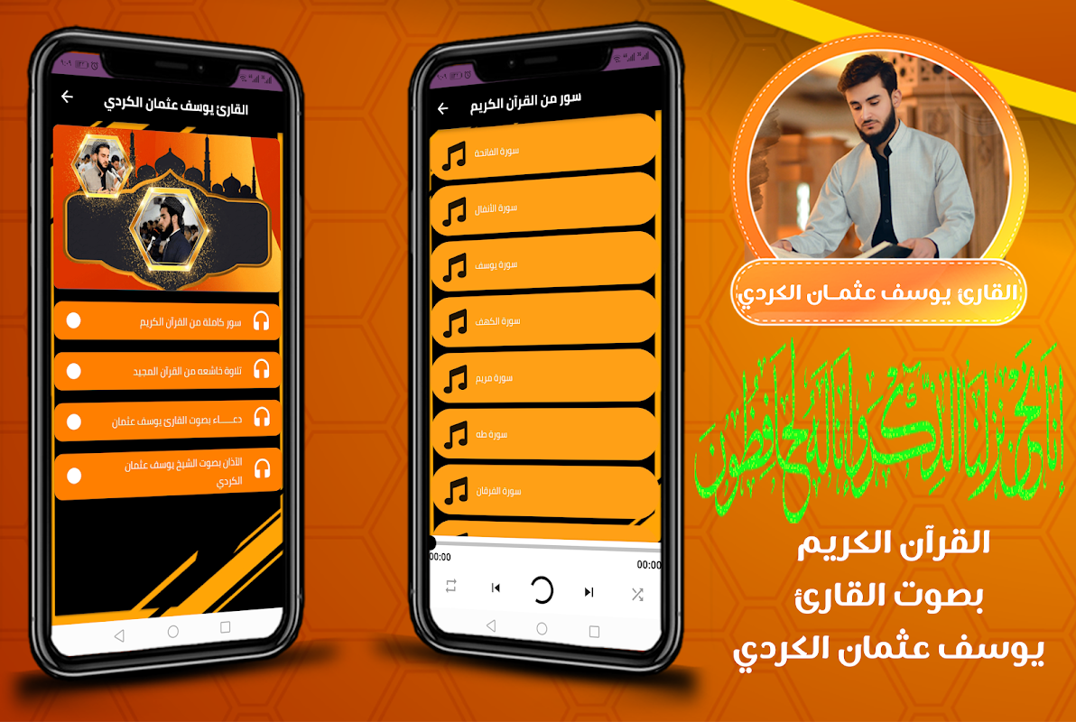 The Holy Qur’an recitation application by Youssef Othman Al-Kurdi allows you to hear and download the Holy Qur’an in the voice of Youssef Othman Al-Kurdi, and you can download the Holy Qur’an to your mobile phone easily and conveniently through one application that includes recitations and surahs from the Holy Qur’an mp3 in the voice of Sheikh Youssef Othman Al-Kurdi.