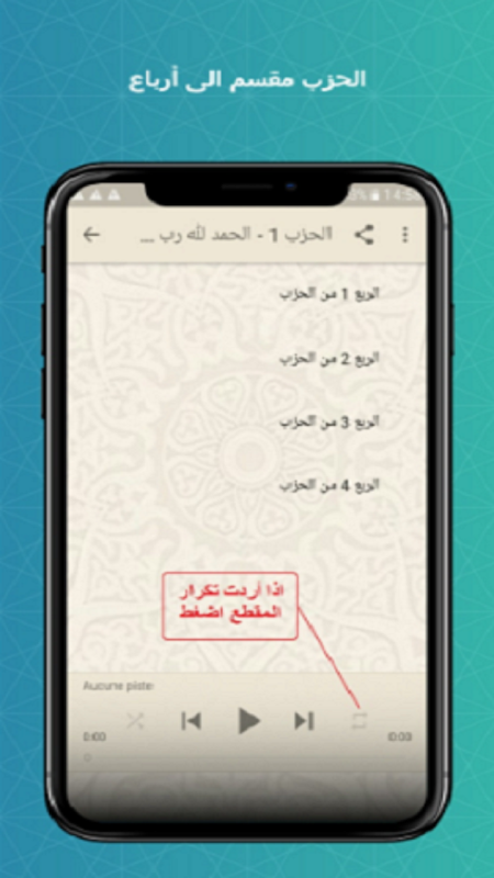 The Qur’an Hafs on the authority of Asim is divided into a quarter of a phoneme for memorization and revision, in the voice of Sheikh Al-Hosari without the net