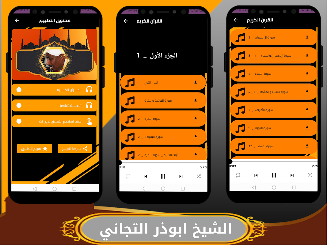 The application of the Holy Qur’an in the voice of Sheikh Abu Dhar Al-Tijjani allows you to hear and download the Holy Qur’an in the voice of Abu Dhar Al-Tijjani, and you can download the Holy Qur’an to your mobile phone easily and conveniently through one application that includes the Holy Qur’an mp3 in the voice of Sheikh Abu Dhar Al-Tijani.