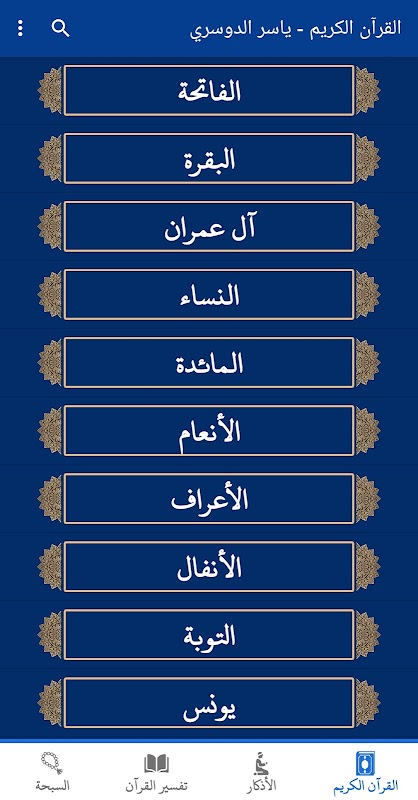 Now you can use the application with ease and also read and listen to the surahs of the Noble Qur’an with the voice of Sheikh Yasser Al-Dosari and live a wonderful case of faith in which you delve into the meanings of the Noble Qur’an, enjoying the voice of Sheikh Yasser Al-Dosari, who transports you to another world with his distinctive voice.