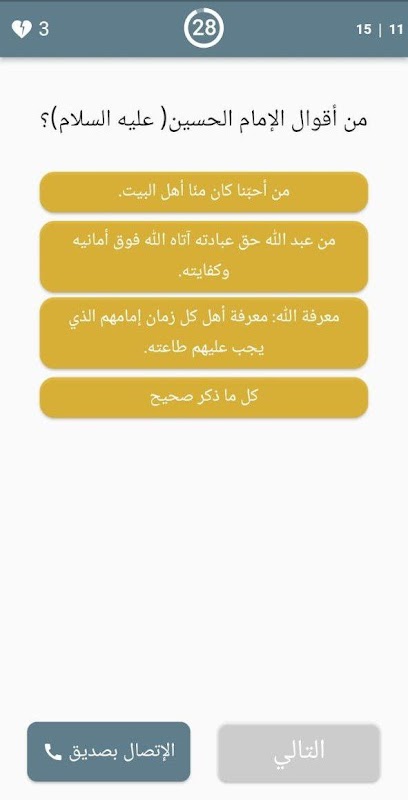 Hence the idea of this application, which presents Husseini knowledge in 600 questions and answers in the form of competitive competitions, in order to be suitable for all ages and orientations, rather than destructive programs.