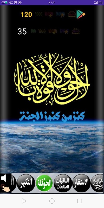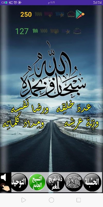 Click on the Tasbeeh to start counting until you reach more than a million praises, and you can zero the number by clicking on the number, and turn on or off the pressure sound and the tasbeeh sound from the two sound signs in the lower left of the application.