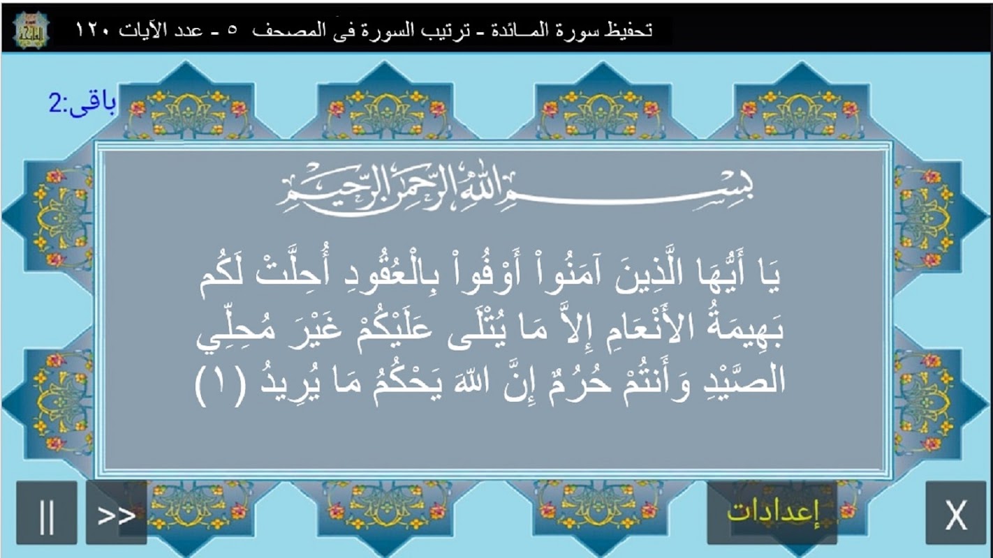 Memorization of Surat Al-Ma’idah - a repetitive recitation with the voice of Sheikh Abdul Basit Abdul Samad that can be controlled
