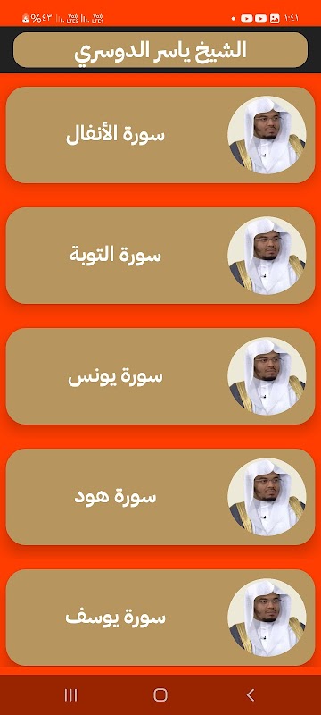 After downloading the application, you can listen to surahs of the Holy Qur’an in the voice of Sheikh Yasser Al-Dosari for free, anytime and anywhere, with complete ease.