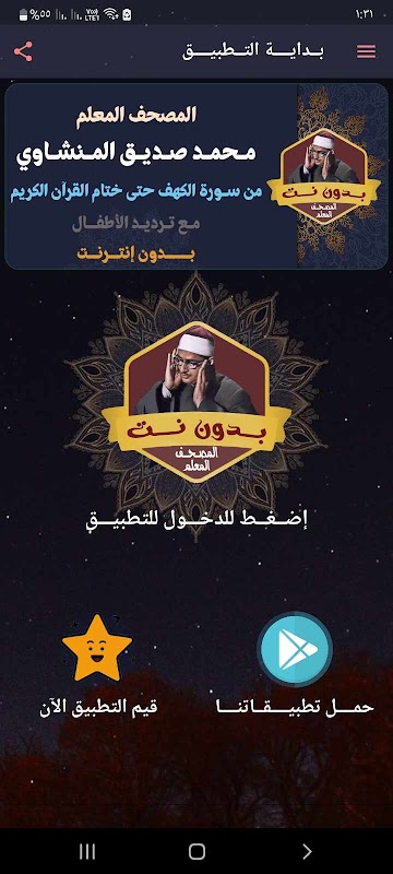 The Qur’an, the teacher, without the Internet, in the voice of Sheikh Muhammad Siddiq Al-Minshawi. Download the entire Qur’an application by Al-Minshawi, the teacher, without the Internet.