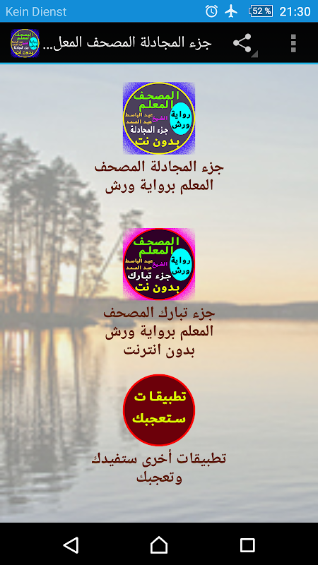 فالتطبيق يحتوي على جميع سور جزء المجادلة بصوت الشيخ عبد الباسط عبد الصمد رحمه الله مع العلم أنه يشتغل دون الحاجة إلى انترنت