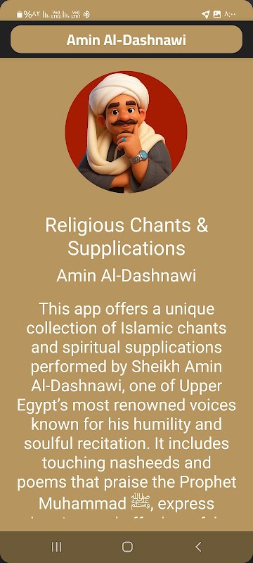 Discover a unique collection of spiritual Islamic nasheeds by the talented munshid Amin El-Dashnawy, available in one app — completely offline.