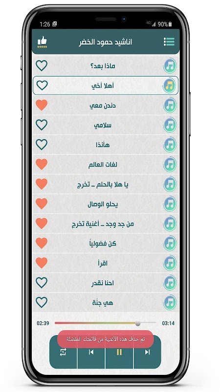 The free application of Hamoud Al-Khader’s religious songs without the Internet allows you to listen to many of Hamoud Al-Khader’s religious songs. Download the Hamoud Al-Khader songs program and start listening immediately. You will find within the application a collection of Hamoud Al-Khader’s songs, “Meditate and the World,” without the slightest need to connect to the Internet if you are one of those looking for something new. The works of the creative artist, song Humood AlKhudher, so this application will save you the trouble of searching, God willing, as the Hamoud Al-Khudher songs application contains the most beautiful songs and chants of Hussein Al-Jasmi, as the application contains a group of religious songs without the Internet. The Humood Al-Khudher Humood Al-Khudher application contains complete albums and chants. The wonderful vocalist Hamoud Al-Khudher is constantly updated, and the application contains the album What Next 2020 and the album Asir Ahsan 2015 and contains many individual songs by the vocalist Humood Al-Khudher Hamoud Al-Khudher. The application of Hamoud Al-Khudher’s songs without the Internet is distinguished by the fact that it does not require the use of the Internet at all unless you wish. By reviewing the lyrics of Hamoud Al-Khader’s songs or information about the songs, you will need very little internet to do that. The application is also distinguished by the fact that it is able to immediately stop when a phone call is received and play Hamoud Al-Khader’s songs without the Internet when the call ends. You can also listen to the songs in the background of the mobile phone. And use the rest of the applications easily and without the Internet for free only when you download the application.