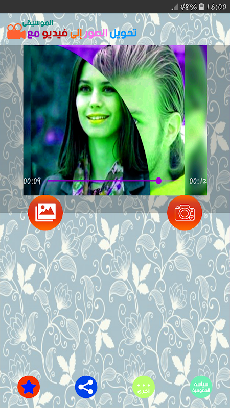 إنشاء فيديو من الصور والموسيقى هو صاحبك الاول فى جميع المناسبات تسطيع صنع فيديو لعيد ميلاد لفرح لخطوبة لرحلة تسطتيع تجميع الصور التى التطقتها مع اصدقائك فى اى مناسبة و اضافة اغانيكم المفضلة وإخراجها فى فيديو اكثر من رائع .