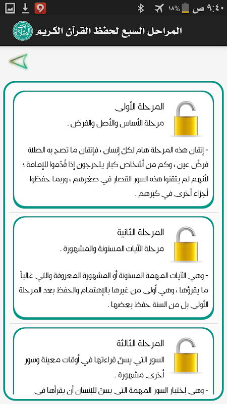 يتكون البرنامج من سبع مراحل، في كل مرحلة مجموعة من السور أو الآيات والتي تم ترتيبها بحسب الأولية والأهمية وبشكل مناسب جداً، وعند إكمال جميع المراحل تكون قد حفظت المصحف كاملاً.