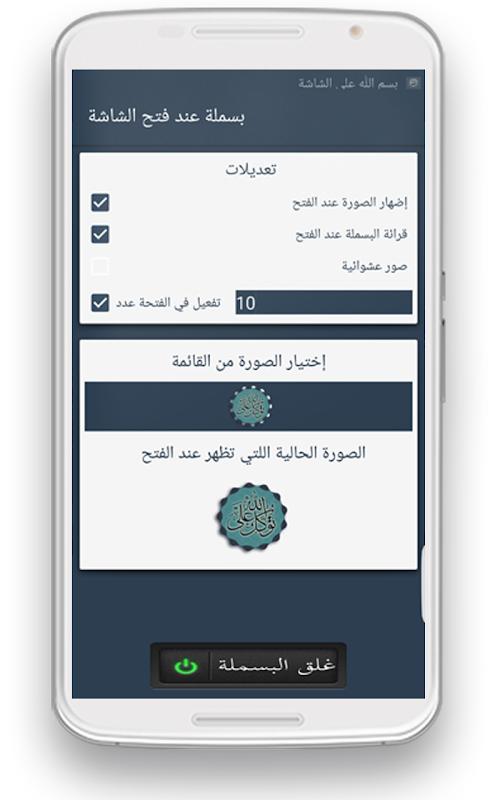 هل تريد الإستماع إلي البسملة مع ظهوركتابة للبسملة عند فتع الهاتف إذا حمل هذا التطبيق .