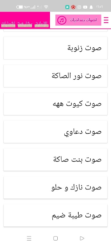 The application of the voices of girls recodat with the voices of Arab girls, the voice of kisses, kisses, challenges, and others.