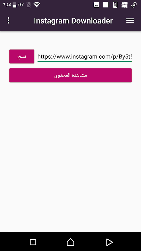 - الصق رابط الفيديو في قسم تحميل الفيديو من الانستجرام