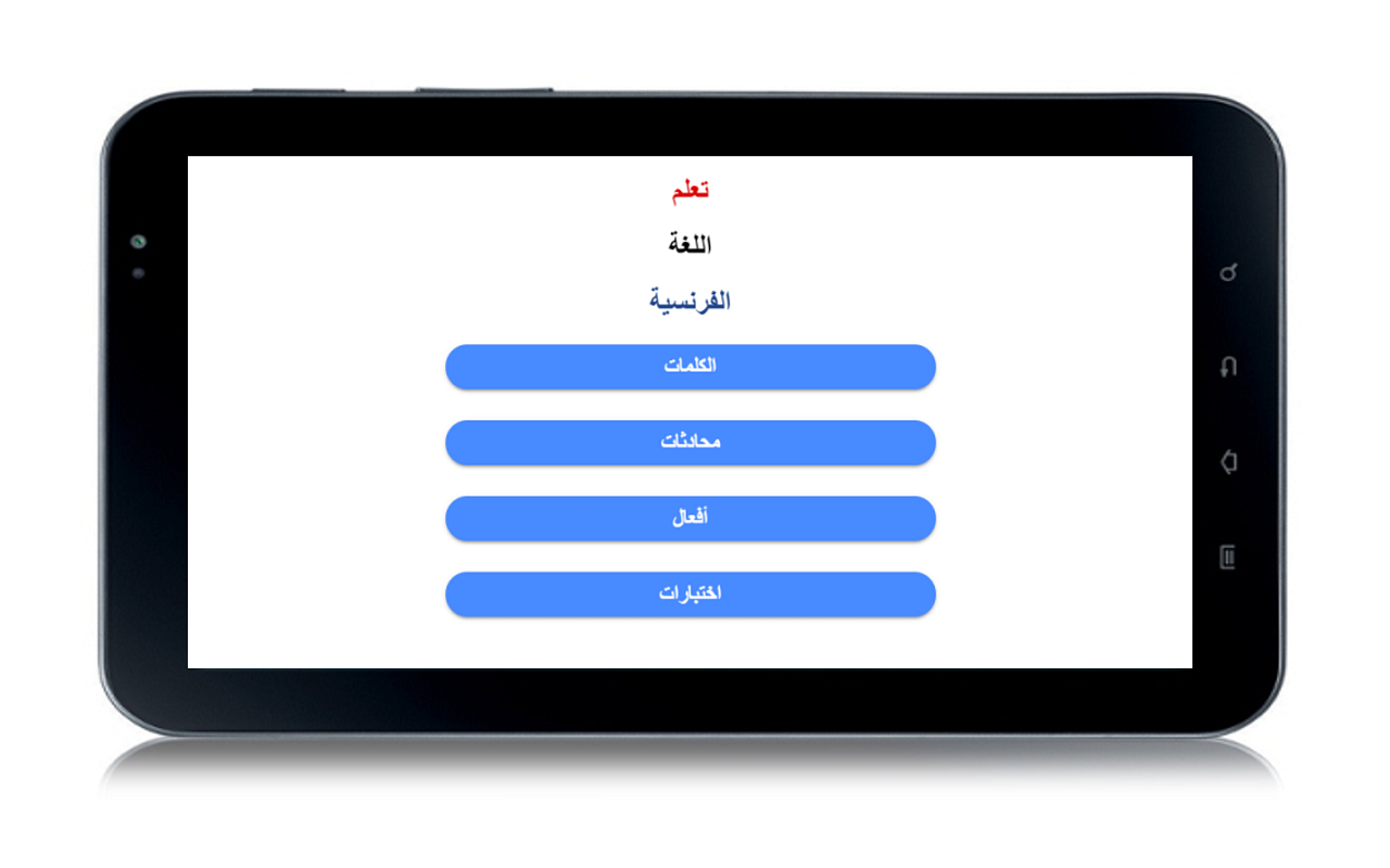 The application in Arabic and offers Arabic translation of the most important French words used video and audio without Internet