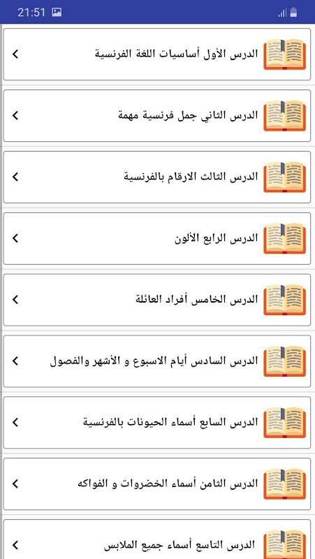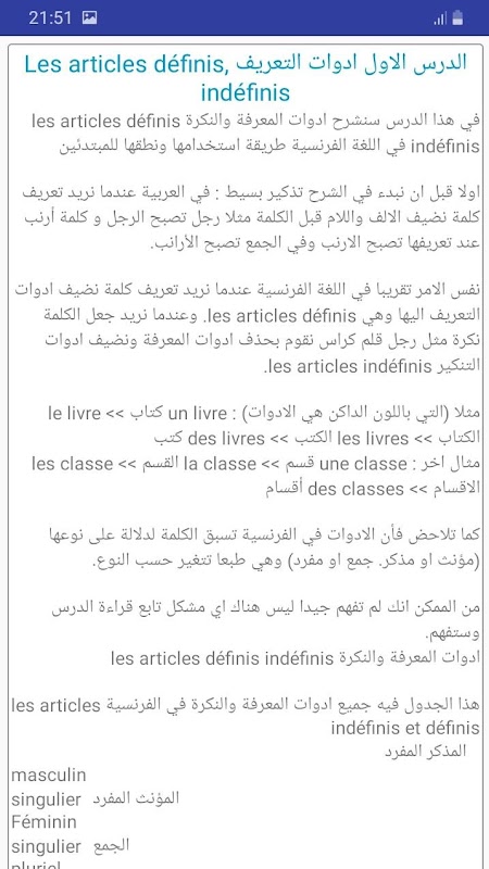 An application to learn the French language from scratch through simplified lessons in Arabic that works without the Internet