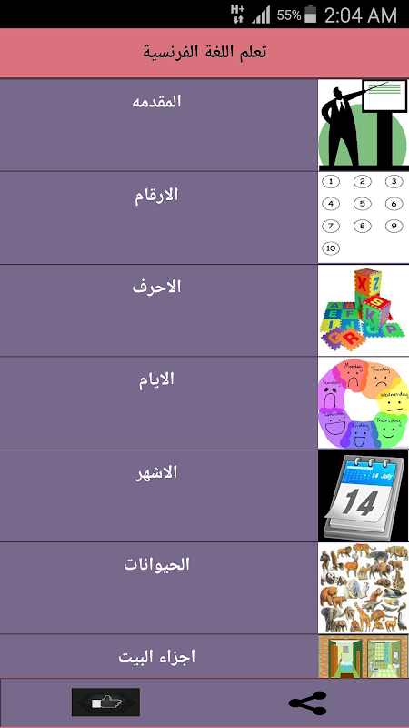 حمل هذا التطبيق الان و لكي تكون انت اول من يتعلم اللغة الفرنسية باقل وقت و تشاركها مع من تحب.