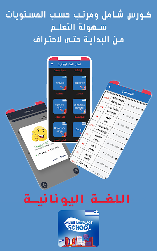 This application is an integrated course to learn the Greek language easily from scratch to professionalism, as you will find in it more information from the school because it is explained in a simplified way and prepared by specialists in this field