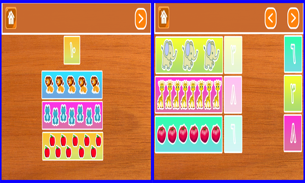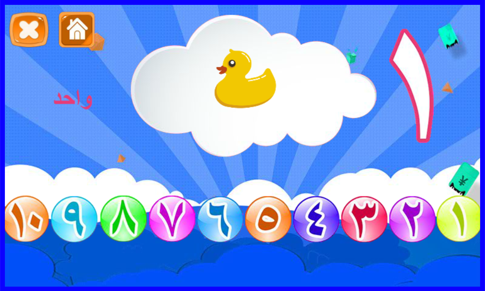 The application of teaching Arabic numbers for children is characterized by an easy and simple interface to use, and it also contains a set of beautiful pictures that attract the attention of the child and help him learn and remember the numbers.