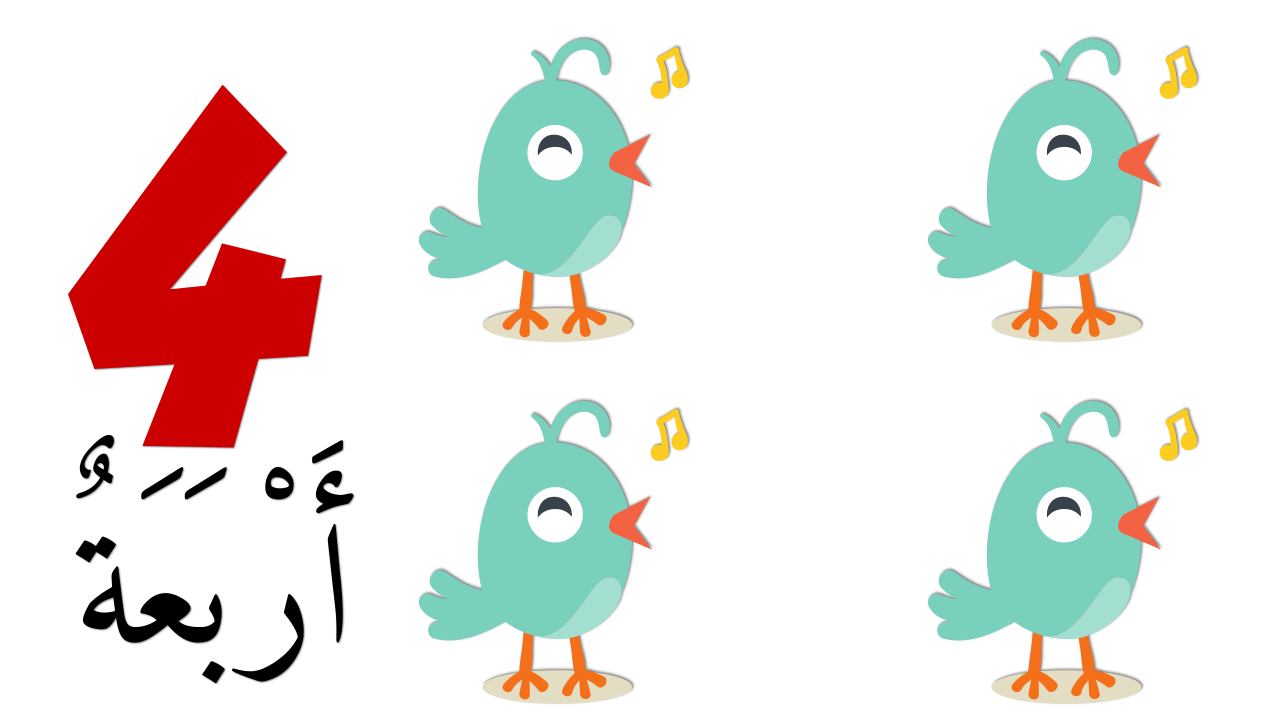 Teaching children Arabic numerals in Arabic and pictures of birds in color - 1
