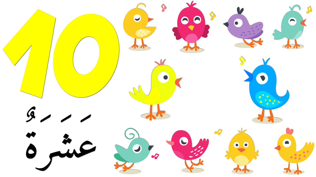 تعليم الاطفال الأرقام العربية باللغة العربية وصور العصافير بالألوان،