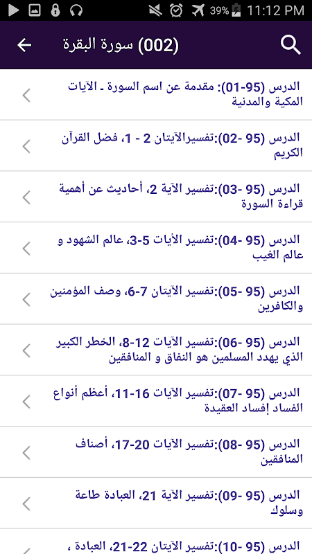 3- إمكانية البحث عن سورة محددة او درس محدد .