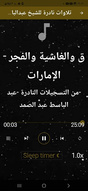 And the purity of the sound and the timer, where you can set a specific time and then it stops, and the small size of the application, and play the audio without the Internet, and automatic playback of the next surah.