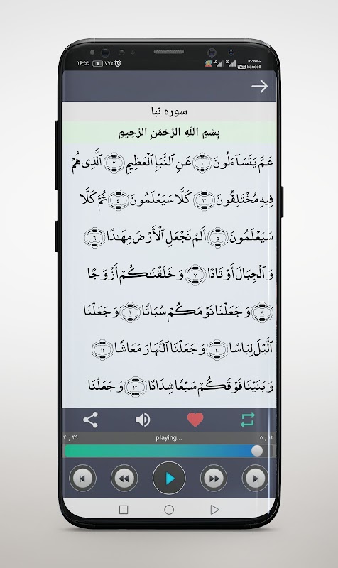 ✔ Possibility to change the font of the text of the verses of the Holy Quran