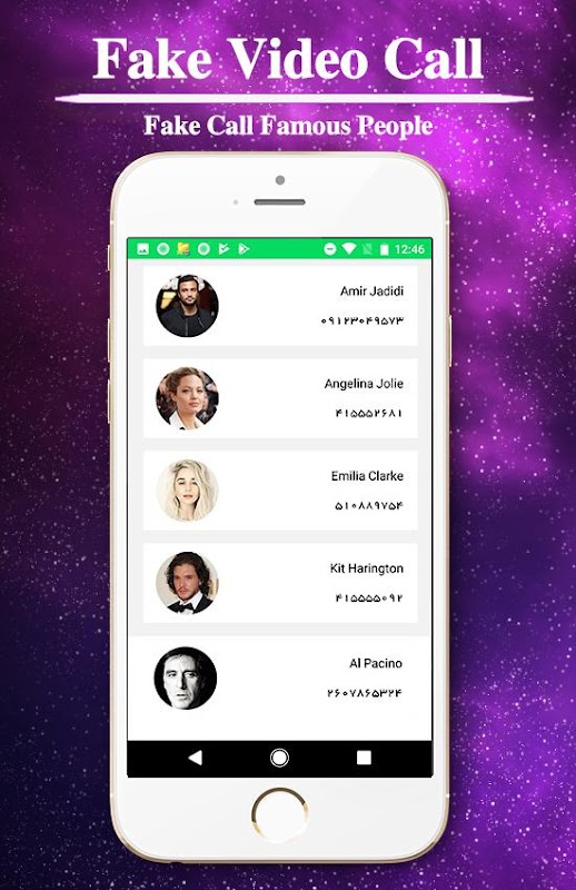 یک برنامه سرگرم کننده برای سرکار گذاشتن دوستان و آشنایان، شما در این برنامه میتوانید با توجه به لست موجود در برنامه از آدم های سرشناس و بازیگر تماس فیک و جعلی برای گوشیتان تنظیم کنید تا در ساعات تنظیم شده گوشی با تصویر فرد انتخاب شده به زنگ بزند،
