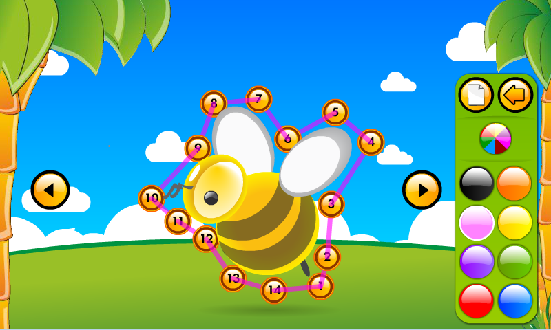 في كل مرة تضغط على الرقم او تربط الارقام يمكن للطفل سماع الحرف او الرقم و في النهاية يسمع الطفل اسم الحيوان حتى يتعرف عليها