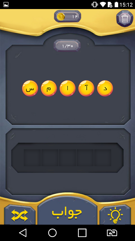 در این بازی هوش و اطلاعات عمومی شما به چالش کشیده می شود. شما باید کلمات در هم را که در خانه های بالای جدول آورده شده مرتب کنید و یک کلمه با معنی بسازید.