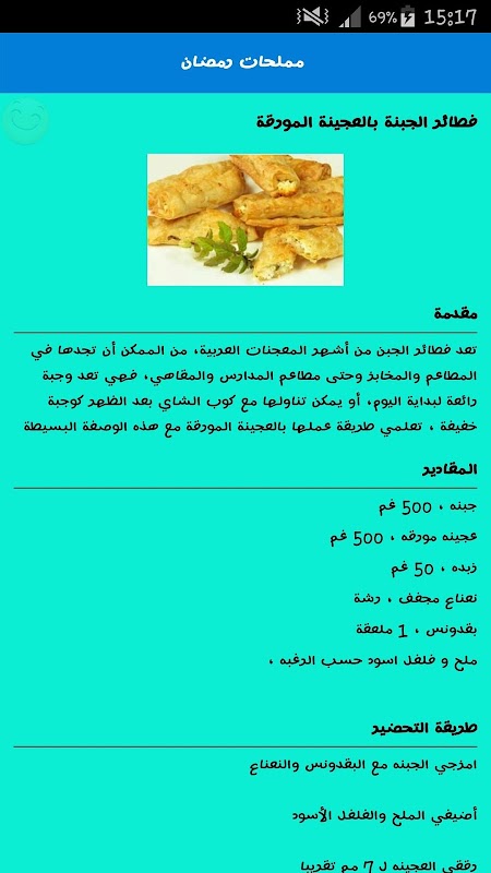في هذا التطبيق يوجد أكثر من 20 وصفة من الوصفات التي تشتهر بها شهر رمضان، حاولنا جاهدين في هدا التطبيق البحث عن انواع كثيرة من وصفات الطبخ بكامل انواعها و من انحاء الدول العربية وكذلك العالمية. كما ستجدين اشهى الحلويات اللذيذه و الجميلة التي سوف تزين مائدتك في رمضان و في المناسبات.