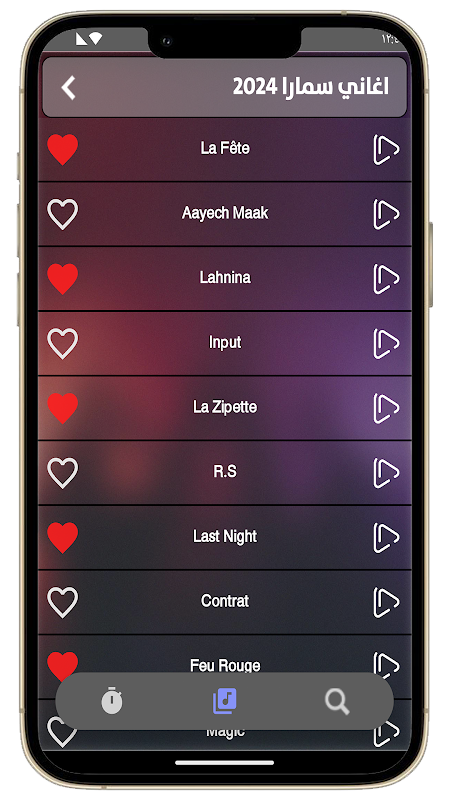 The application of all Samara songs without the Internet 2024 contains many features, including: adding new exclusive Samara songs directly as soon as they are released, the feature of adding songs to the favorites list, the feature of random switching and repeating between songs, shooting a video and listening to Samara songs, small in size and does not take up space in The phone has a song search feature, contains all the lyrics of Samara songs, and many exclusive features only in the application of all Samara songs 2024 without the Internet.