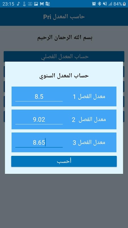 the حاسب المعدل PRI app is an android application that helps the Algerian elementary school students or their parents or teachers to calculate many types of averages like they calculate it in the Algerian elementary schools, for example it helps to calculate the :